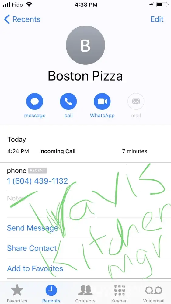 I made an order for delivery to the local Boston pizza in Dawson creek bc Canada