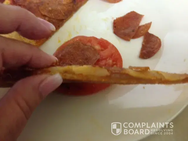 Ordered (our usual) L pepperoni to go this evening...we live 2 1/2 hours west of Calgary so cannot just go back and return the product. I asked for regular crust...photo attached...the pizza is so thin my nails are almost thicker! I called Dillon (Manager ) and explained...he said to ask for him next time to process the order...that won't work every time. EXTREMELY DISSAPPOINTED!...again! "Quality" is NOT consistent. Jim Treliving would not be impressed. Terrible!