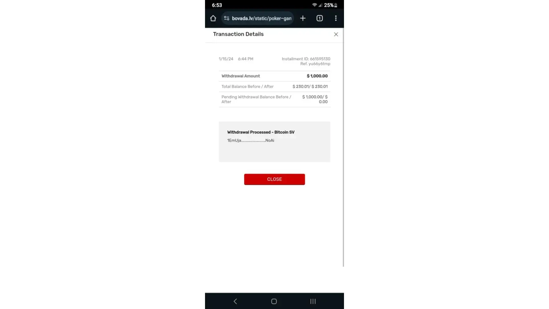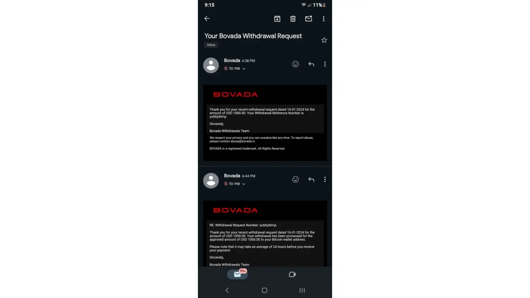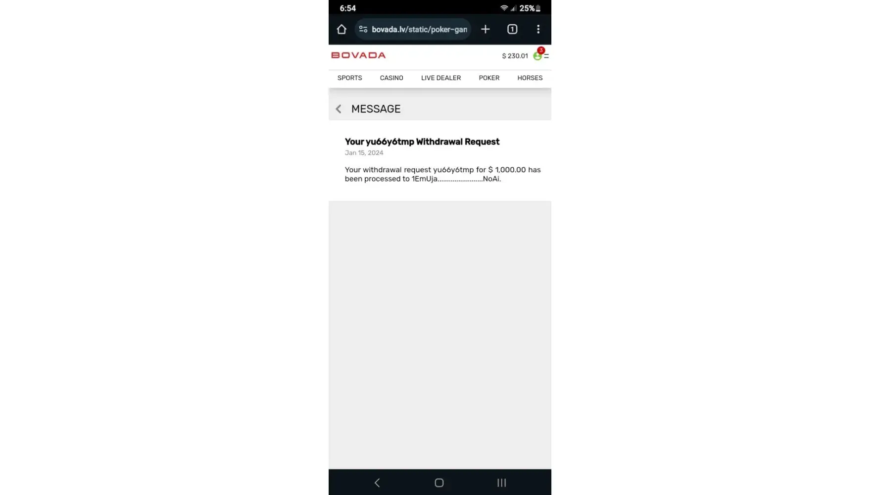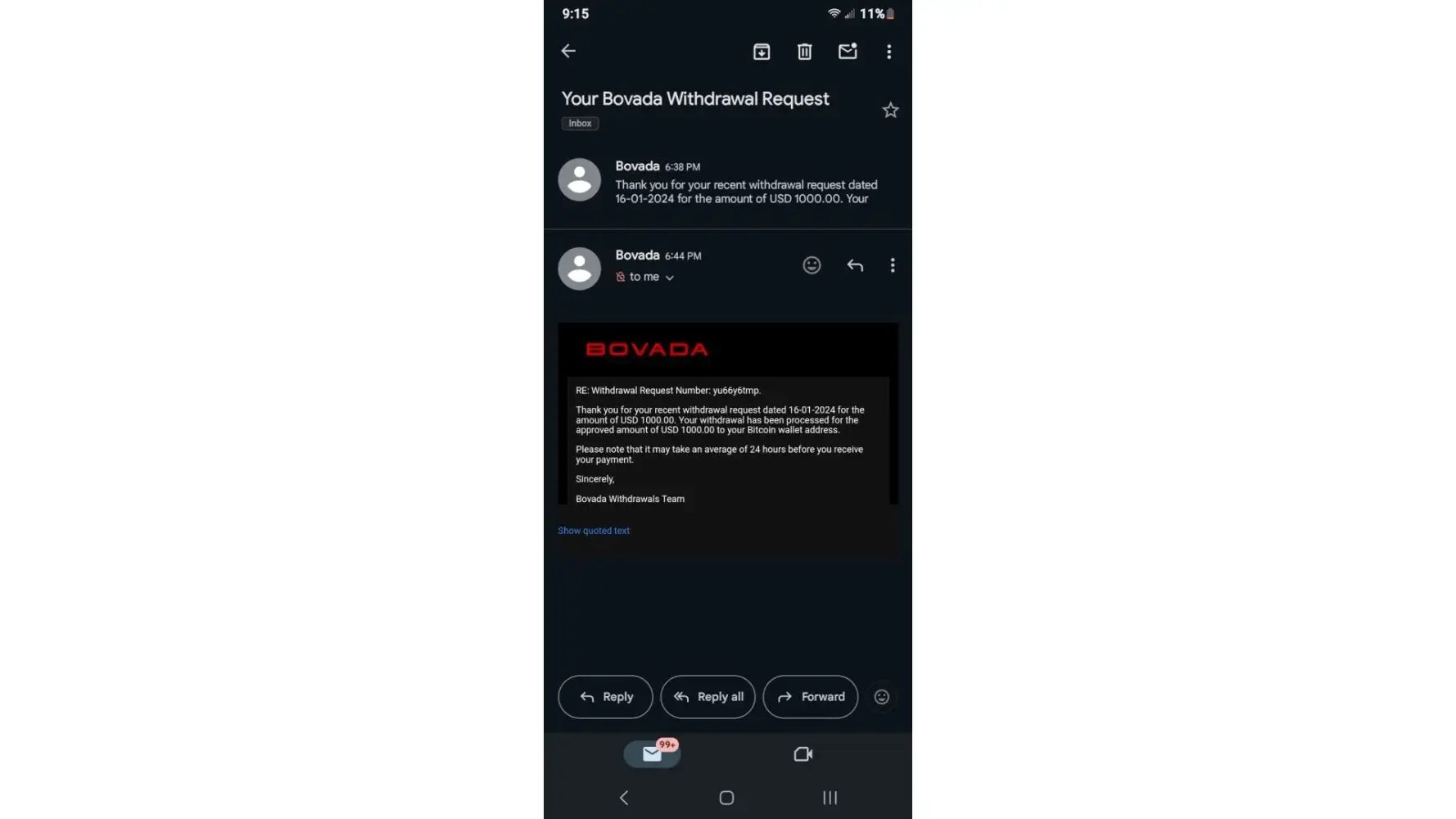 I won 1300 I cashed out a thousand they said it was pending then they emailed said it had been processed but I checked nothing with both bovda and the receiver account bovda provided a bitcoin transaction that was no good on blockchair then told me my login info was no good this all happened on 01/15/2024