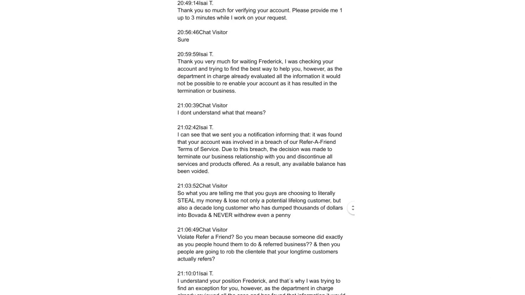 I am a decade long, "all-star" level bovada customer... Have deposited probably 100 times, 10's of thousands of dollars... Never withdrew a penny from them. Fast forward to lastnight.. My recently turned 21 son-in-law who isnt familiar with, nor has ever even heard of bovada previously... So I bring him up to speed on the online sportsbooks, and help him to set up the account.. And then waste my time assisting him with going about creating a accounts and means of accessing bitcoin and everything else... Now of course given their constant promotion of, and insistence towards "referring your friends" "bring you friends", etc.. That they drill you will over and over again on their site, thru your email, or anytime you speak with an agent.. Once would imagine that is because they actually would like to promote gaining clientele and adding business.. Only thats not the case whatsoever... In fact they want you to be the person to lure someone in for them so that they can willingly accept their deposit... Only to turn around mere hours later and close out and void the account and as such, blatantly rob those of whom you have referred to them.
