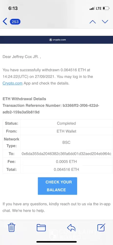 Desired outcome: My weekly crypto cash back applied to my account.
