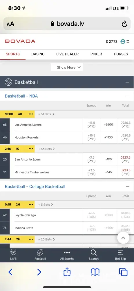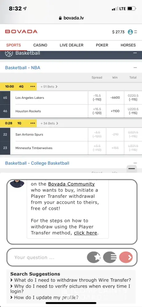 I placed a wager on the Lakers Rockets game January 10 it was halftime the board on bravado screen read 10 minutes into the fourth quarter. This is how you do business . Fake times in games to get betters to bet on fake lines? Also my bank notified me someone in their office tried to buy a bunch of plane tickets at a travel agency. Still wondering why I never heard anything about this from bovada.