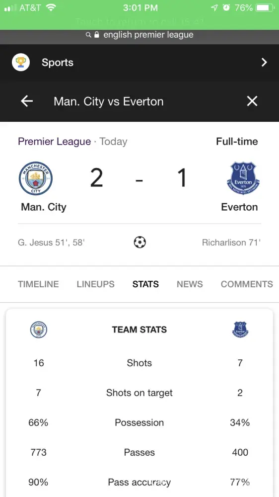 Result: Jesus Scores at score 2-0, he did.