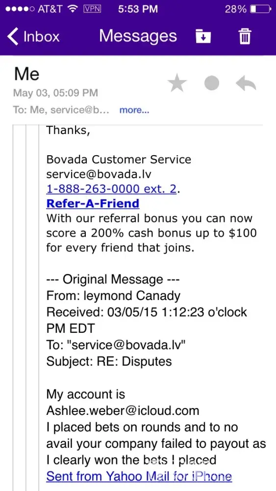 If anyone has some advice on how to get my money I'd sure appreciate it...this all sounds LIKE A SCAM ON BOVADA'S PART.
