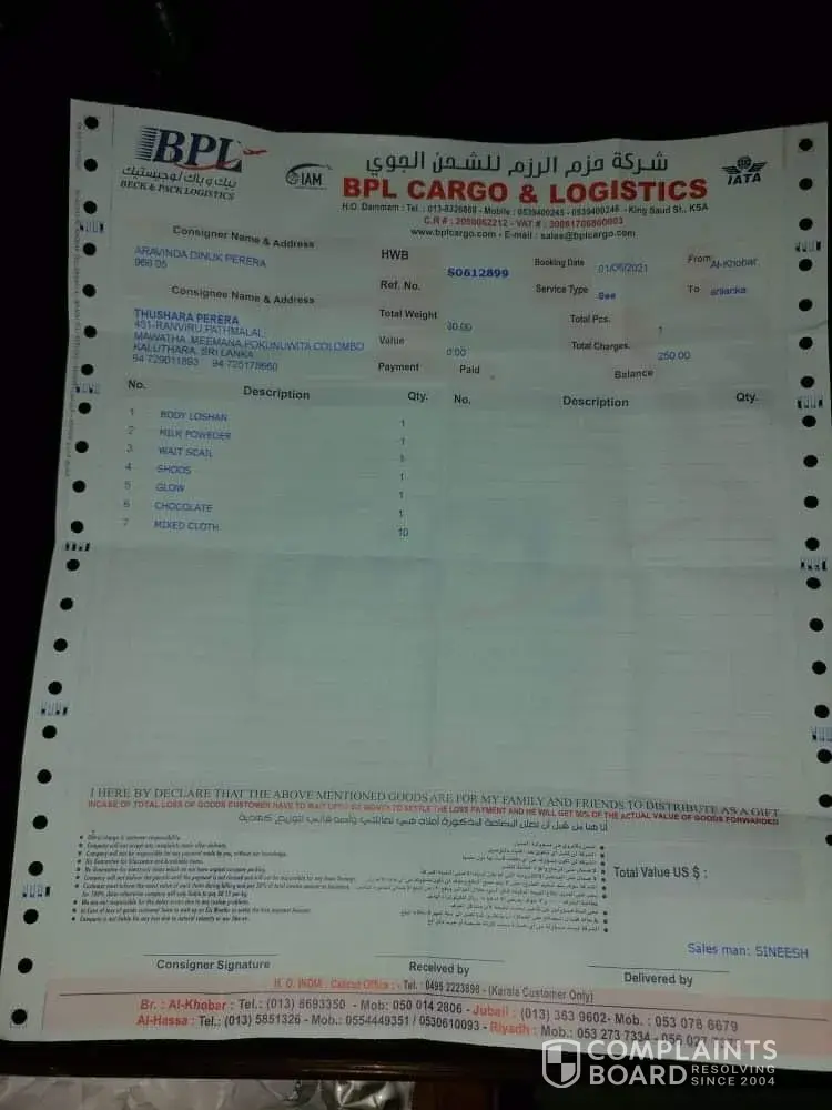 Worst service of bpl cargo...my cargo tracking number is S0612905...it was send from AL.khobar Saudi Arabia on 1st June 2021 and now it's 5 months 12 days and still the status is same...