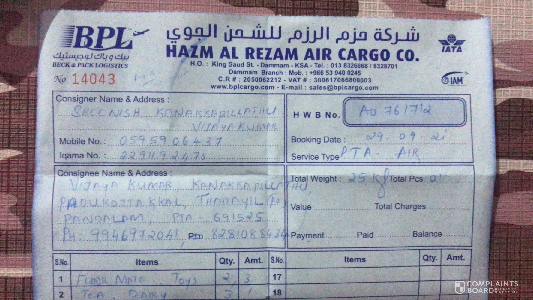 BPL Cargo / BPL Company complaints: history and resolution overview