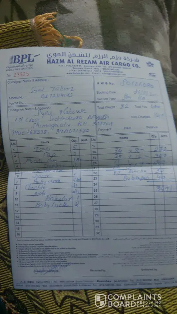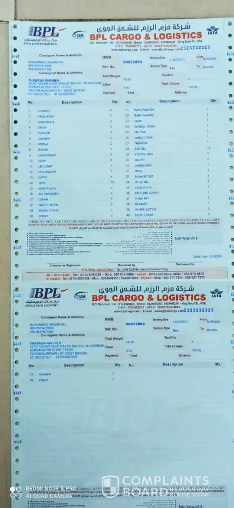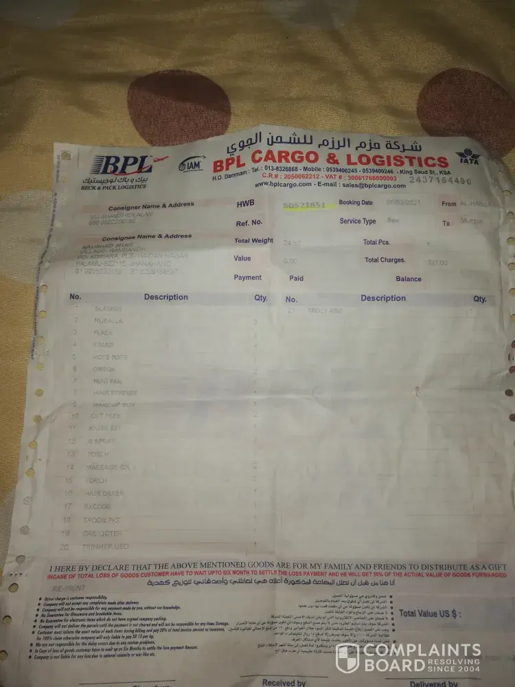 BPL Cargo / BPL Company S0519332 saudi arabia dammam ceti : al ahsa The goods of BPL courier have not reached our house since 6 months. Complement against them