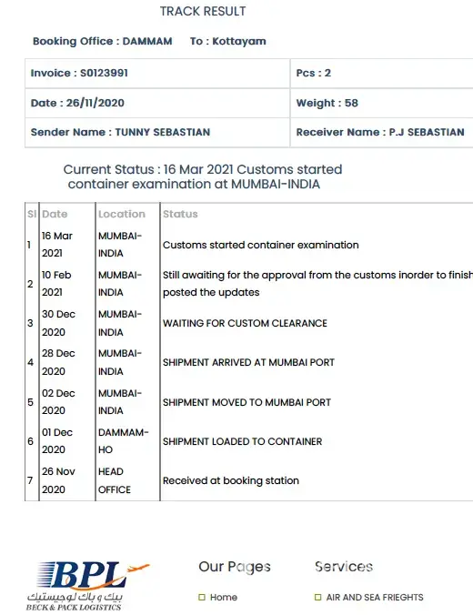 BPL Cargo / BPL Company Courier not reached yet, it's been 2 months after dispatch