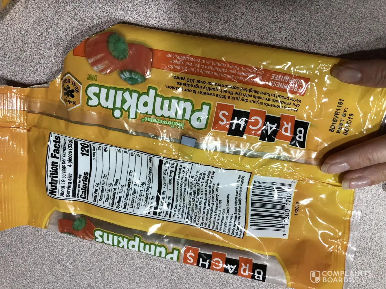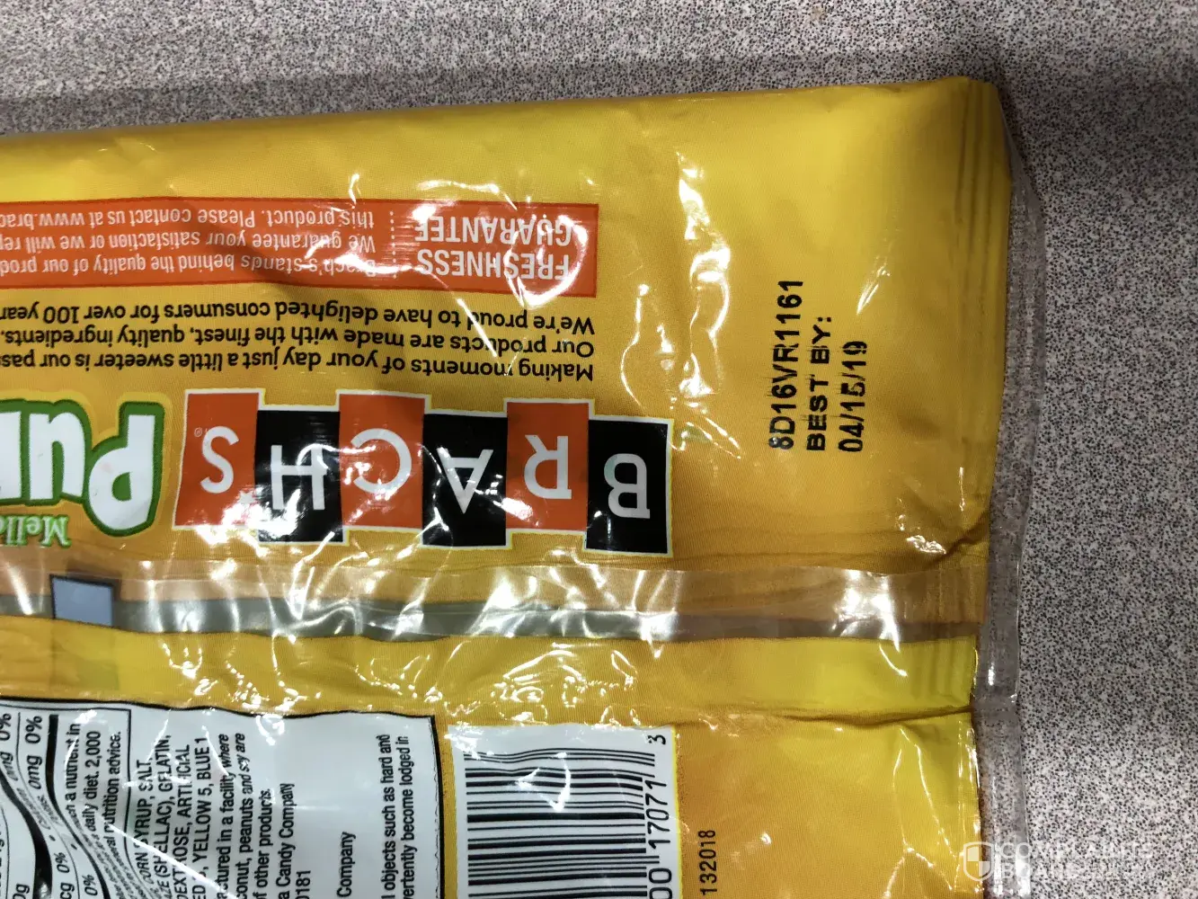 I have bought this products for years and this is the first time I have gotten a faulty product. The goodies are as hard as rocks, they have no maple flavor. The code says they should be good until 1/25/2019. I purchased the goodies at Dollar Tree in Johnstown PA, and have 5 bags of these terrible candies. I cannot return them to Dollar Tree because they are 35 miles from us. This not common with Brachs candies. I would like to receive a refund or reimbursement for this horrible product at this time. Mary Kreinbrook, 207 Main Street, Berlin, PA. 15530 Phone [protected]. The code on the bags is [protected] 7 on all 5 bags.