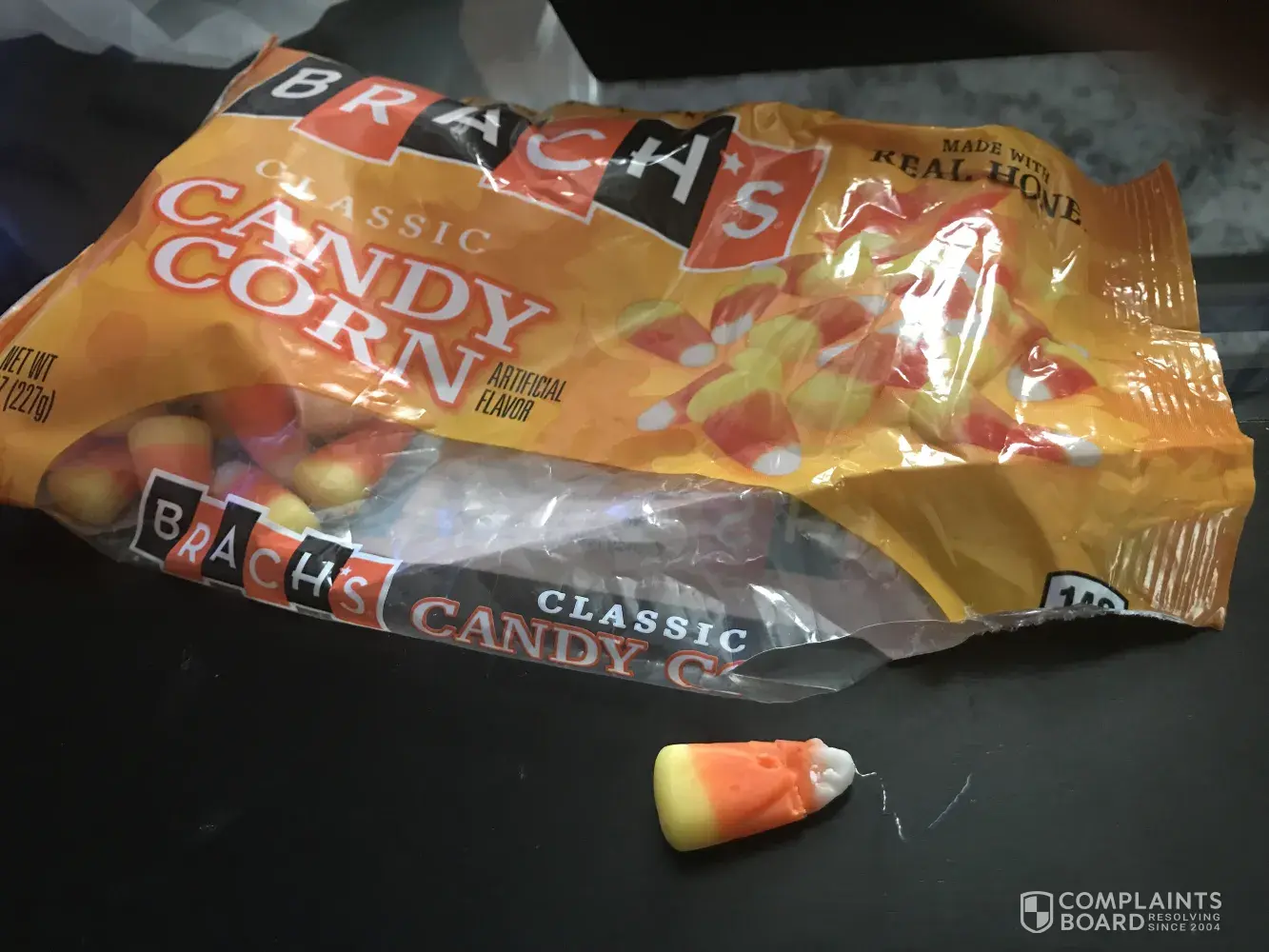 The candy was horrible. It was hard and stuck together. I am very upset. This is my third bag. Will not buy any more. Very bad product. I almost broke a tooth. I love Brachs but would not recommend it to anyone. I am tempted to go to the media about my experience. I normally don't complain but had to if it would stop someone from experiencing the horror.