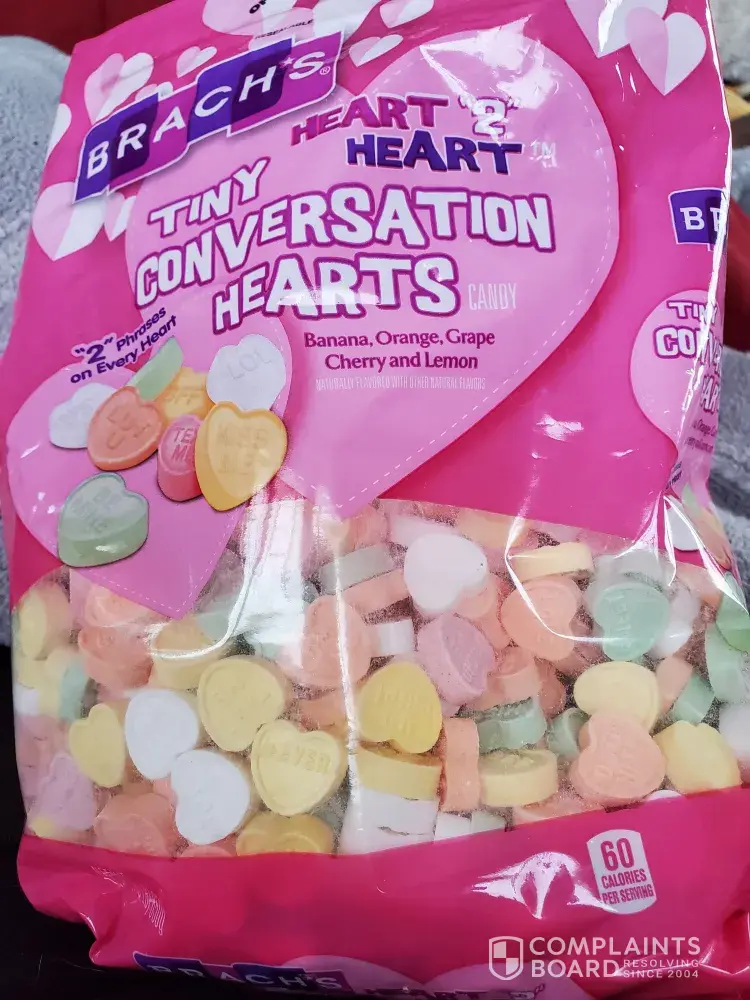 I had bought 2 bags of Tiny Conversation Hearts 14 oz at Walmart. Yum! Nice & soft. I am 66 & went back to buy more. They were sold out. So went online with Walmart. Sold out. So went to Amazon. Found 4 bags for $12.99. Ordered them on February 5, 2021. Arrived... Terrible tasting, powdery, very hard, unable to eat. Says Best Buy JUN 2022 0330FTX228. Contacted Amazon to send me 4 more bags. Arrived... the very same came in the mail. What happened to the yummy ones from Walmart? I am very sad to have to write to you. All I wanted was the very simple candies from years past. NOT THESE 2 SIDED ONES.