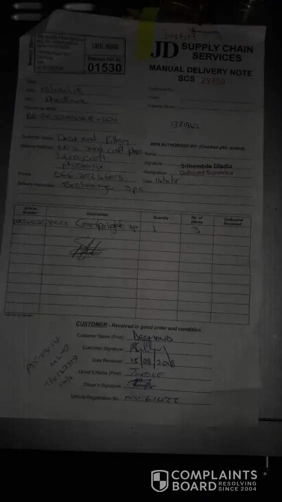 1. Assured me that delivery to Estcourt would be possible and will ensure it's done in the morning of the 28th. Needless to say they called me the morning to confirm delivery address, but never made it to the address until 16:30in the afternoon for a package that was expected at around 10:00. The delivery individuals I was told would assemble the bed on arrival. This didn't happen because they arrived so late in the day.