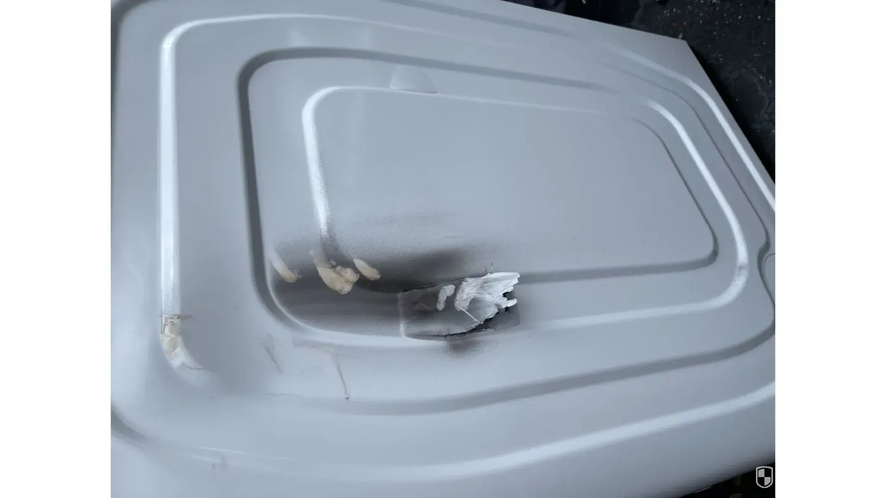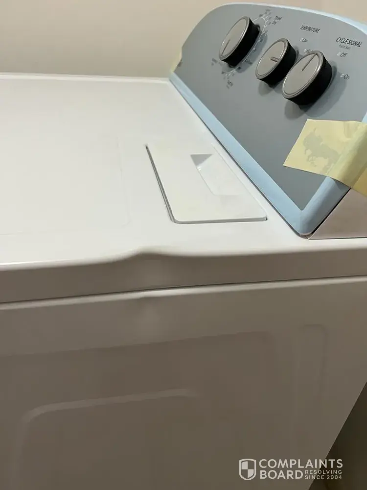 A Whirlpool Dyer was delivered on October 21, 2023. After installation, a dent was noticed. There is a dent in the right side, see photo. We want this exchanged for a new one. We can't fix it.