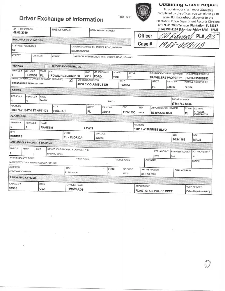 Police report on record [protected], Officer Edwards.