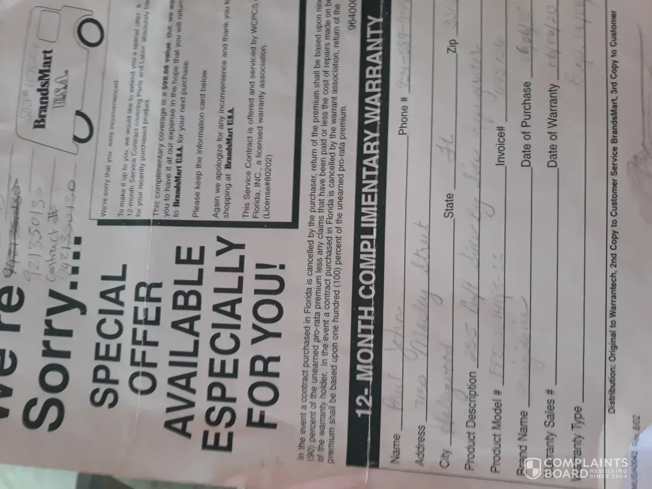 I purchased a refrigerator at BrandsMart USA. I bought the five-year extended warranty after being told by the salesperson how critical it was to purchase a five-year extended warranty due to the high cost and complexity of the Samsung refrigerator. I paid $3349 dollars. I reported to BrandsMart USA a catastrophic malfunction of my refrigerator. After multiple failed attempts to fix the fridge, I am still without a working refrigerator. It is almost six months since the report and I do not have a working refrigerator and there are multiple days waiting for the techs with significant loss of income.