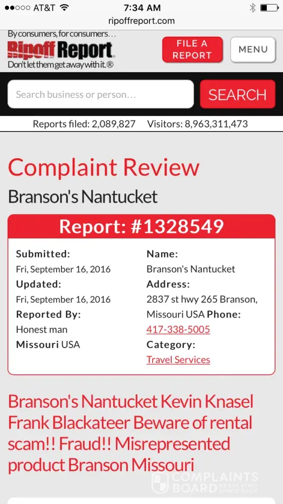 My complaint is that Branson Nantucket gave out my private and confidential contract specifics. They assured me that I was within the time to rescind the contract I had signed with the other company who had claimed they had bought out Branson. They lied and I was a month too late to rescind. They have admitted to all of this to the Missouri Attorney'...