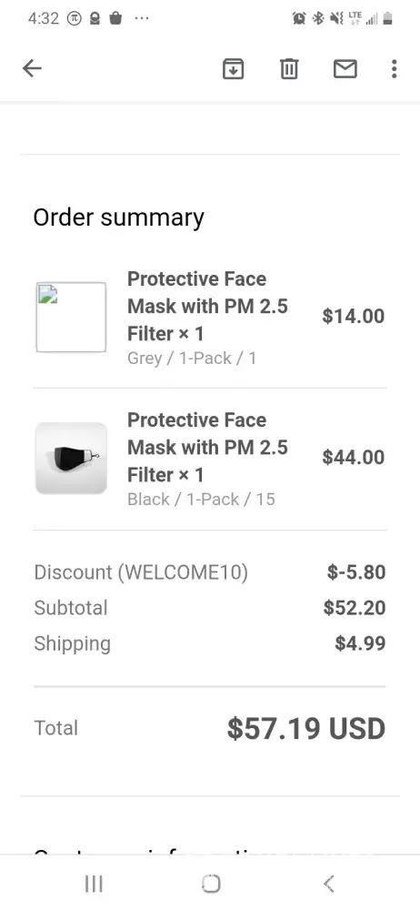 Ordered (#17077503) GRAY face mask ($9.99 incl. $5 for S&H).