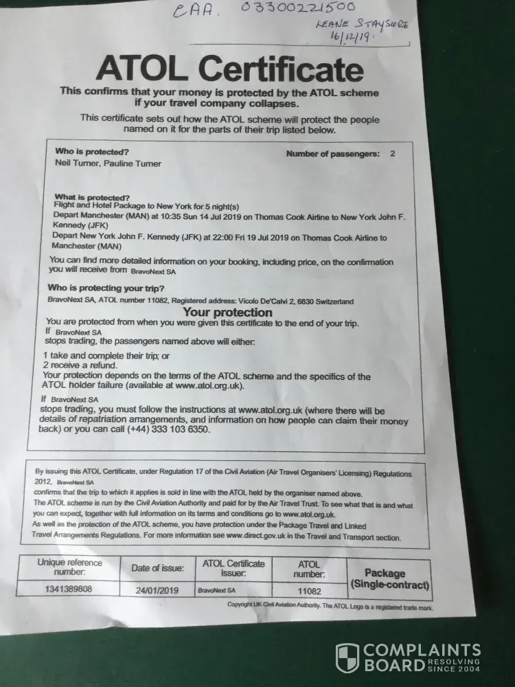 I paid an amount of £408.23 to Bravonext sa for flights through Lastminute.com.