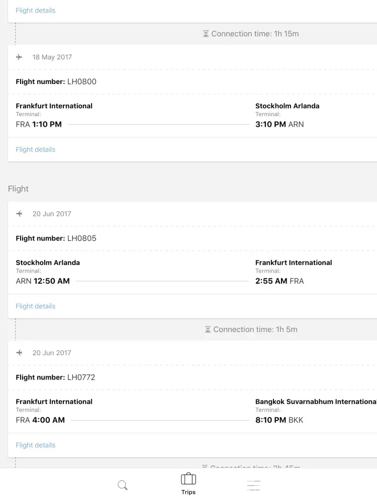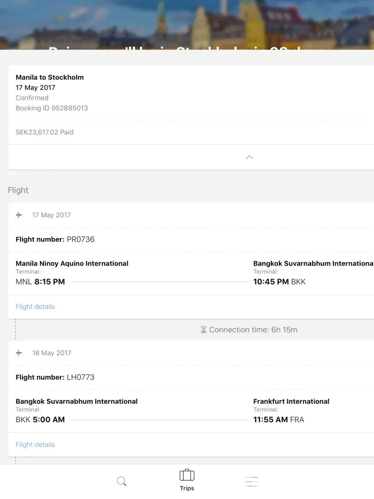 On May 17, we (party of three) missed our flight from Manila to Stockholm due to faulty informtion provided by Bravofly. I never received the usual booking details by mail so I relied on my printed online information provided by the Bravofly app. I am attaching this information. All flight data here is off by 6 hours causing us to arrive at the Manila Airport too late for our first leg to Bangkok. There were also no other fligths to Bangkok available to catch our next leg in time. The information has since been corrected but due to login problems I never had access to it.