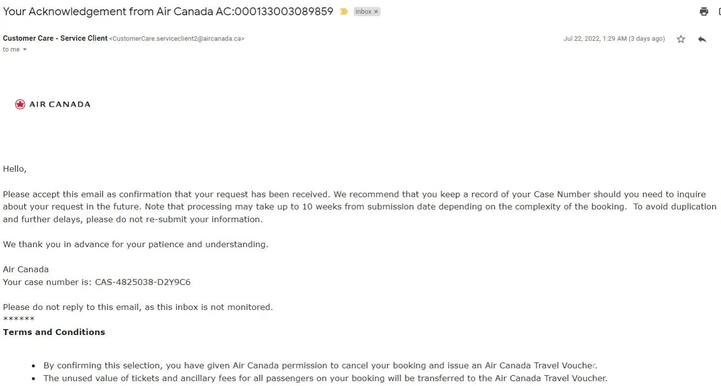 Date of cancelation: 21st July. Time: 3:45pm Calgary time
