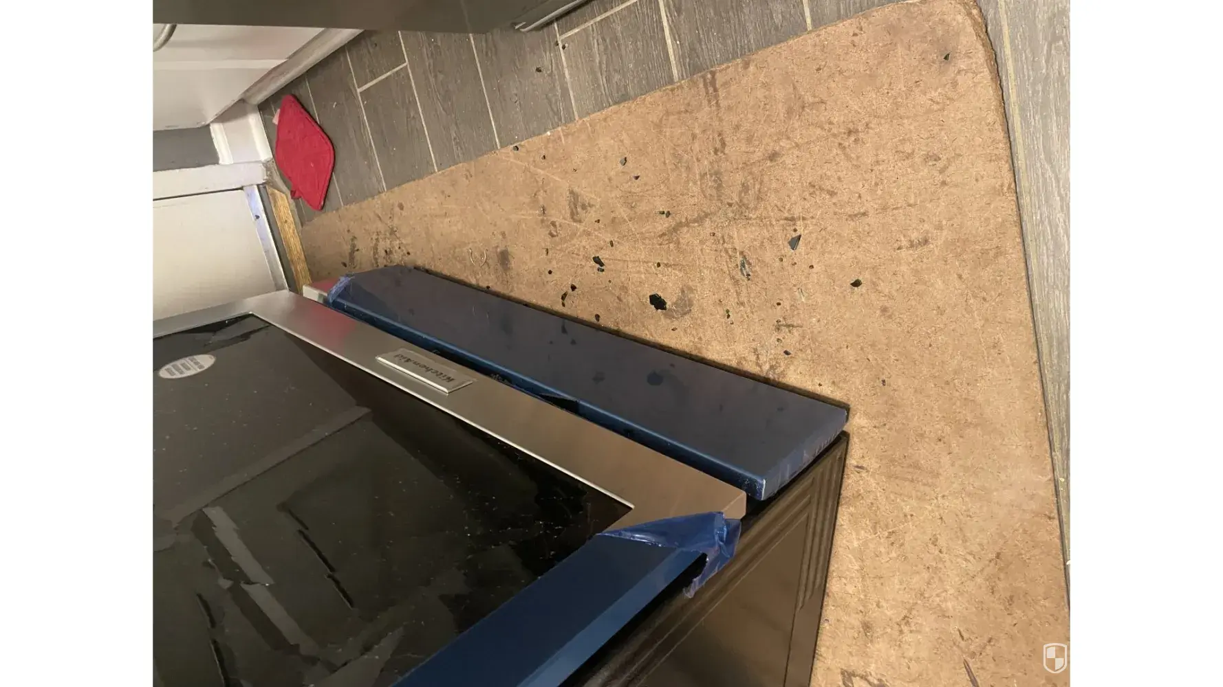 3) They should have had two people for this job since it isn't a front panel but one piece for all three sides which is heavy and awkward.