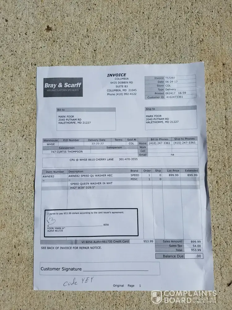 Read full complaint50 Bray & Scarff Appliance & Kitchen Specialists Complaints