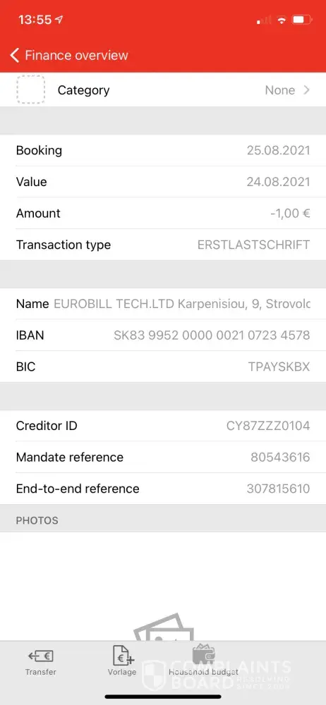 I am complaining about the money was debited from the account