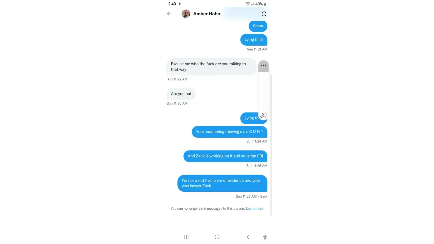 Amber hahn stole by means of fraud lies and manipulation 30,000.00 from a man named Richard Brown FBI are looking for her Zack Craig I was her lawyer who she admitted to the theft and she continues to lie and scam others if you can assist in her arrest we would be grateful