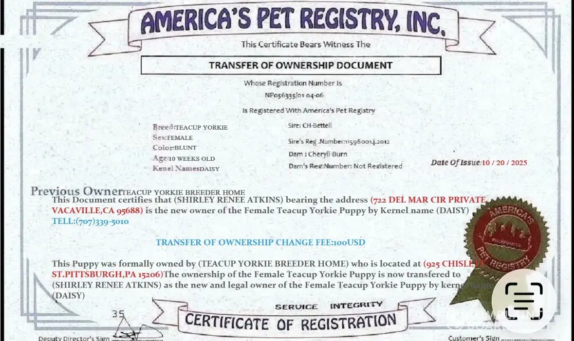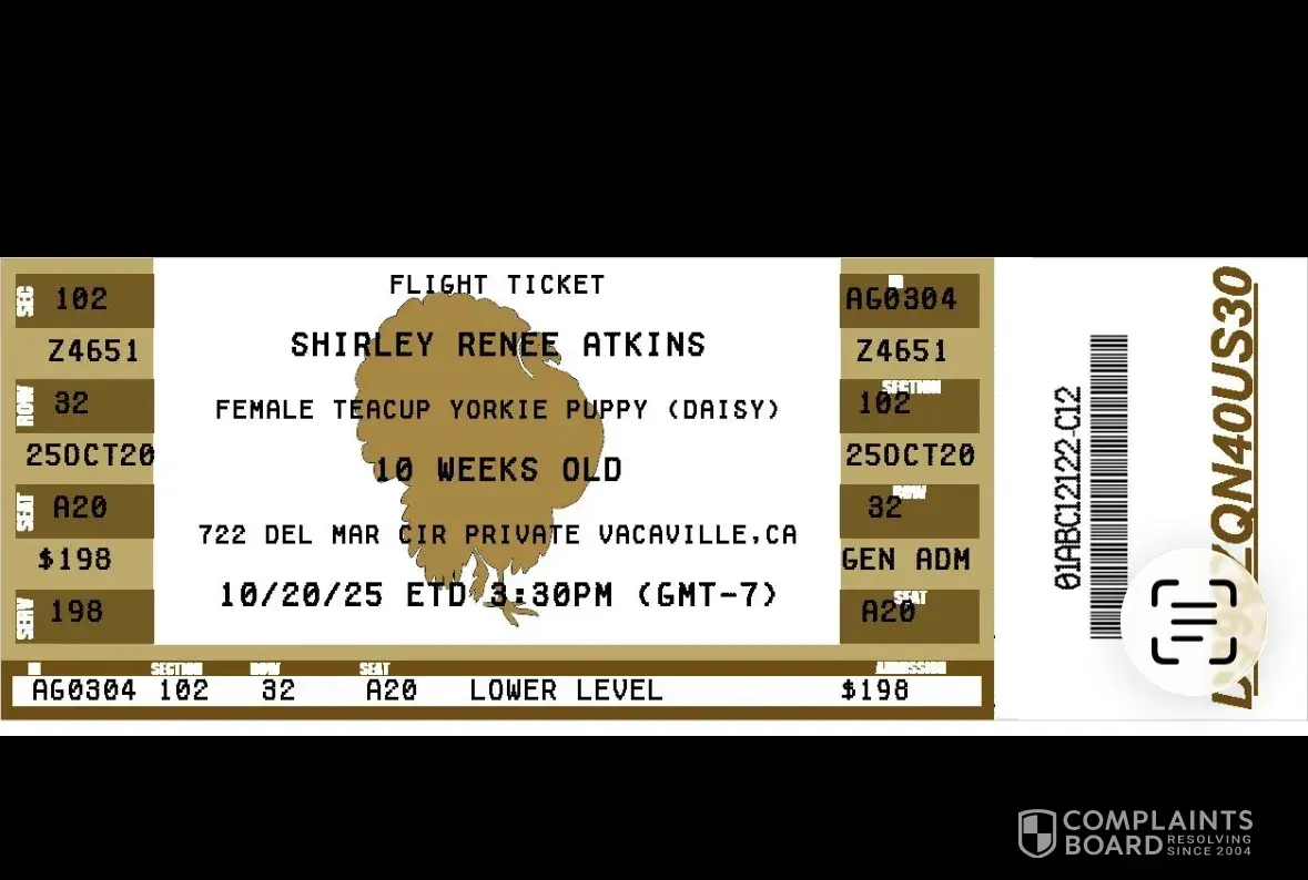 I purchased a TeaCup Yorkie for $600. October 20. Breeder name Teacup Yorkie Breeder Home. I was told from the breeder (John Femvi) Pennsylvania, PA that the puppy would be delivered on October 21. Then I get a email asking for 995 for asking me to send money through Apple Pay. Offering free shipping. Then I get a email from John saying he will email me the owner ship documentation for me to sign and email back to him. He said he would forward to the delivery agency. Then I received a email from United Express Pet Delivery Service asking for $995 for pet insurance which they claim would be refunded to me upon delivery of puppy. Daniel Darnell is who I sent the money to.. Then I received another email asking for 1300 to go and buy Apple Pay gift cards for 1300 which I did. I received another email asking for an additional 1000 dollars. At this point I started to realize I had been scammed. I have asked them to refund me the money and they have not responded. I have asked them for a business name and a contact person and they have not respond. I only have phone contact number which I keep calling and no answer. Number for John Verviers 215-215-5615. Daniel Darnell 318-863-9083. United Airways Pet Delivery Service 223-221-3055. After trying to find out information on these individuals I couldn’t. This is why I am filing a complaint.