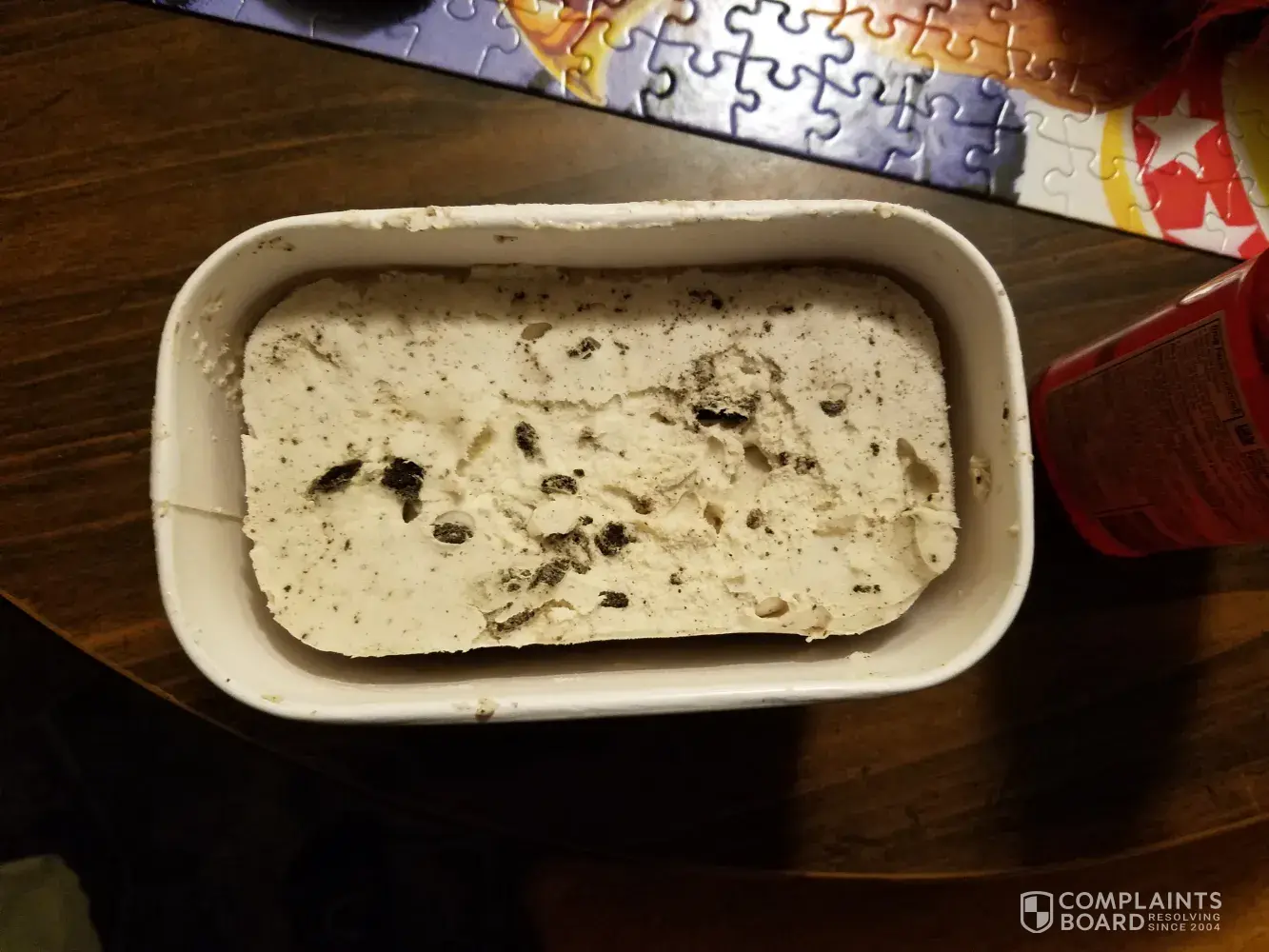 I bought this container tonight as a treat for my birthday. I paid 6.29 for the pint container. When I got home and opened it, the container was not full, the ice cream had shrunk away from the sides and the top was covered in frost bite. It looked horrible but since I have been wanting to try this product, I tried it. It was chewy and tasteless. I was so disappointed on my birthday eve. I tossed the rest in the garbage