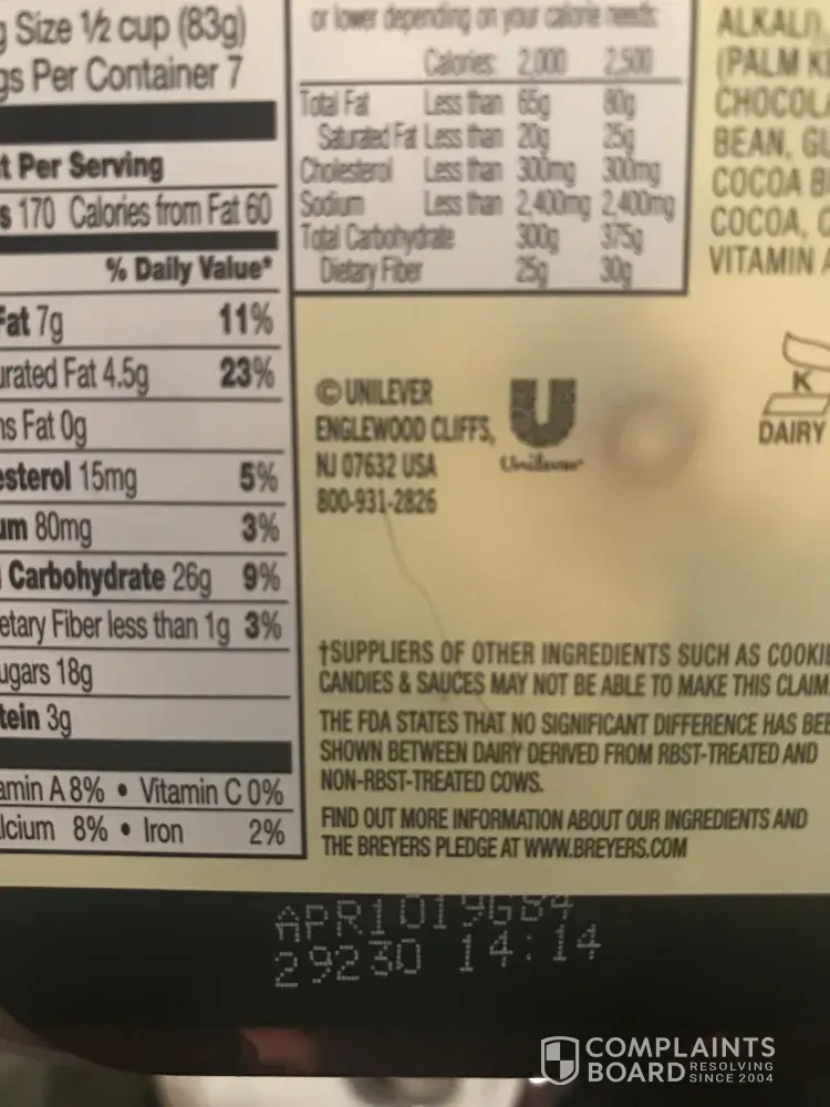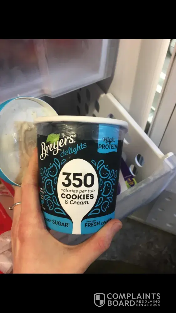 I would like to bring to your attention our disappointment following the purchase today of breyers ice cream fromour local morrisons supermarket in huddersfield, england.