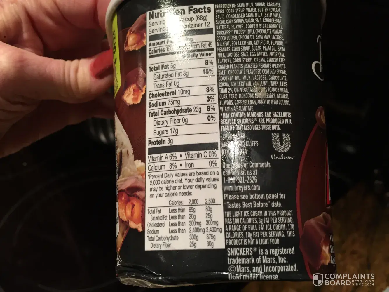 Good morning, I was looking to send an email but I see there is no place just to leave a comment. I just wanted to make mention that I purchased your snickers ice cream. The label said it was a vanilla base with the snicker candy in it. And when I found it to be it was more of a butter almond there was no real vanilla taste to it. So unfortunately was a little too strong of a flavor for us thinking it would've been vanilla. I just wanted to put it out there. I'm a person that you don't complain to death years so I just feel better just put that out there thank you