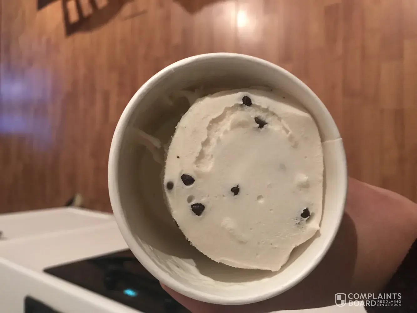 chocolate chip cookie dough pieces on top and only THREE pieces inside the gelato cream.Â