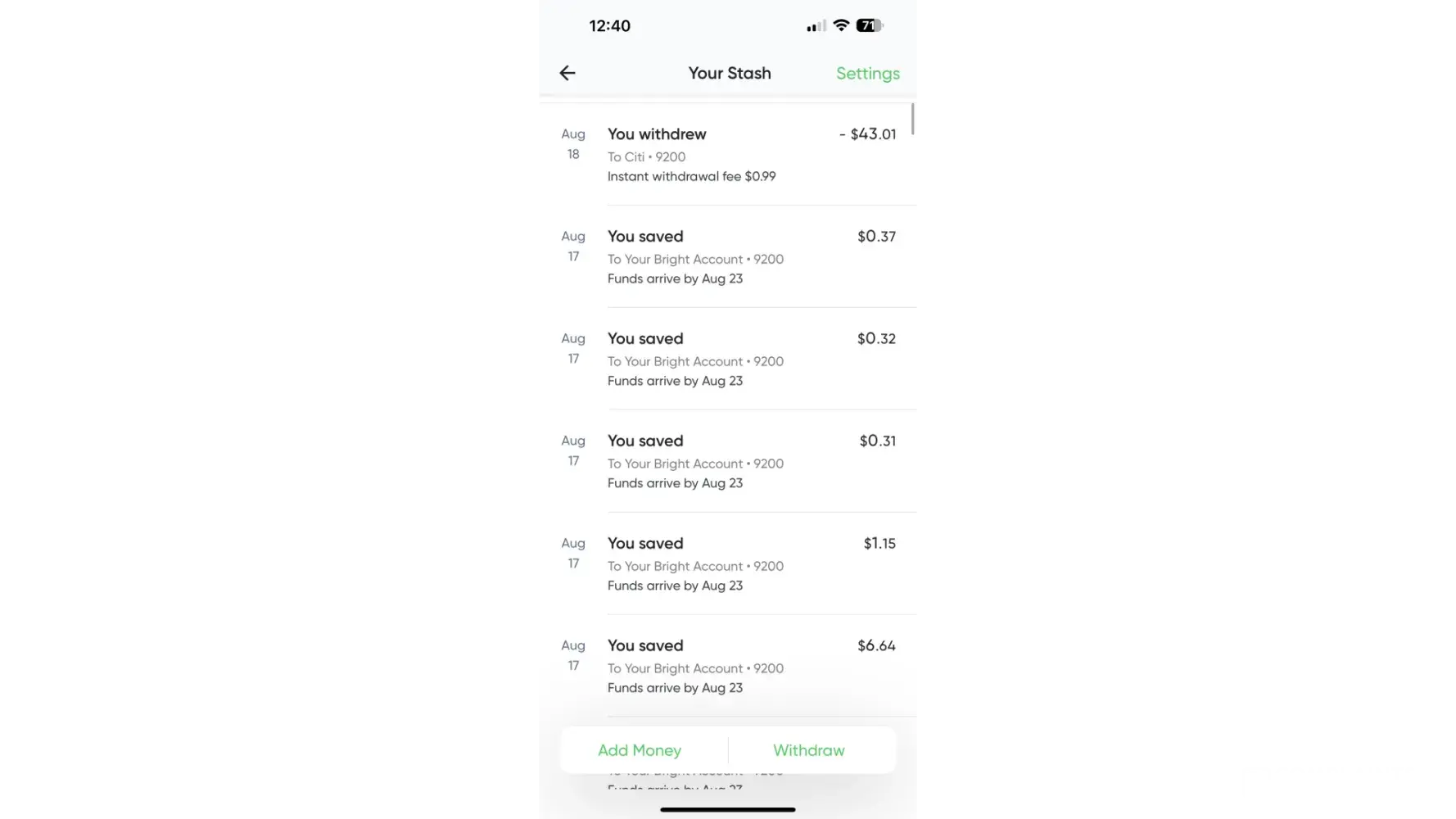 You must connect a bank account to “withdraw†said “stashâ€, only my bank account will not connect, it never was connected in the first place, but they found a way to take that $99.