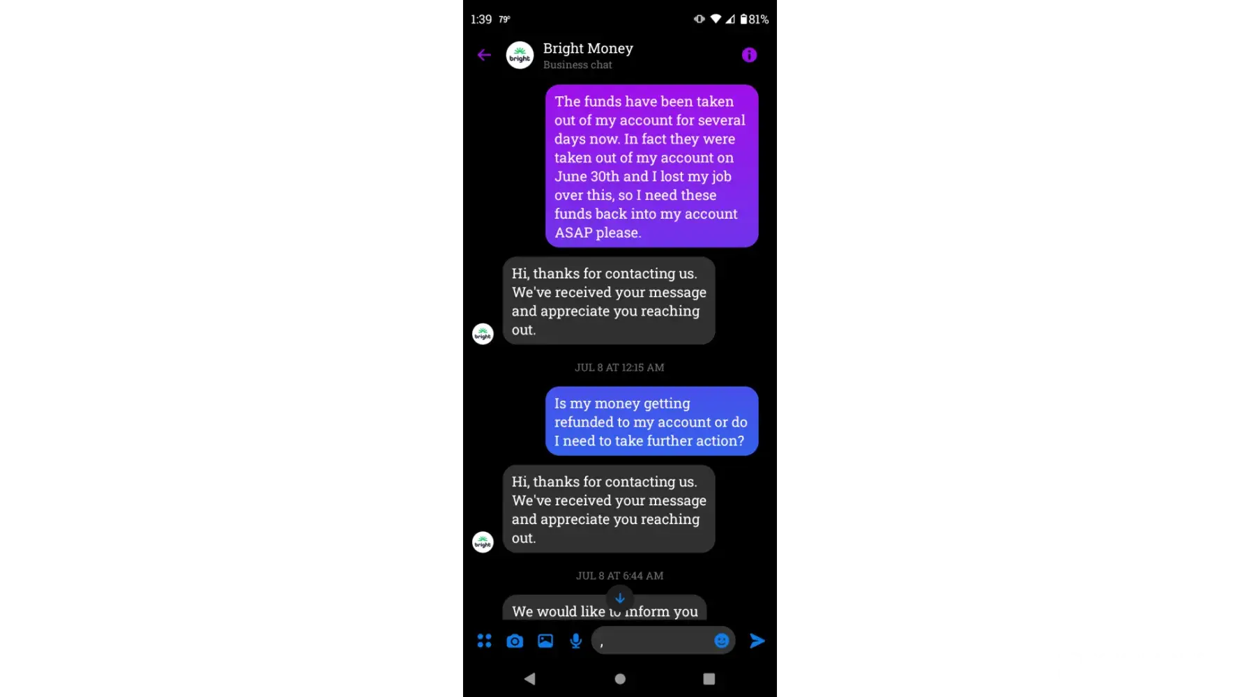 So I emailed customer support on 7/26 and was advised someone would follow up with me in 2-3 days. No one ever did. I then sent another email on 7/31 and got no response. Another batch of small withdrawals came out from Bright. So I attempted to call again and got the same message I got the time before and I sent another email on 8/3.