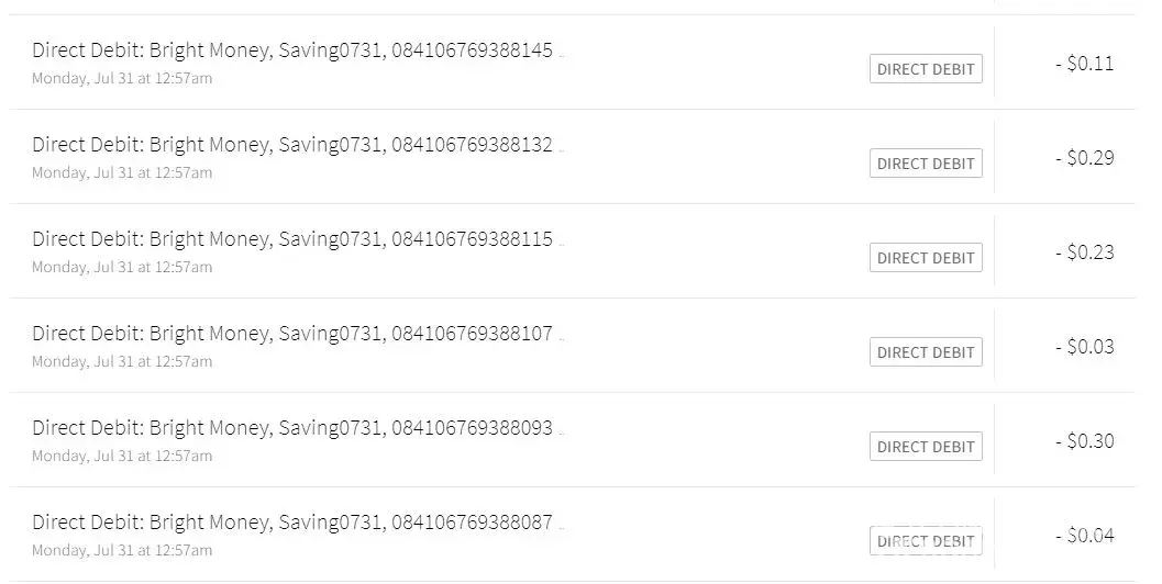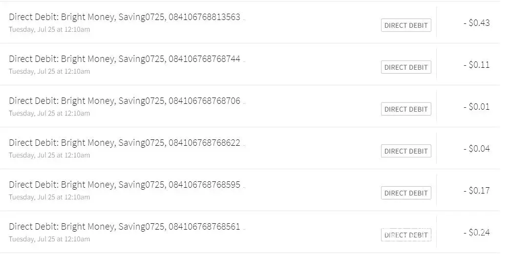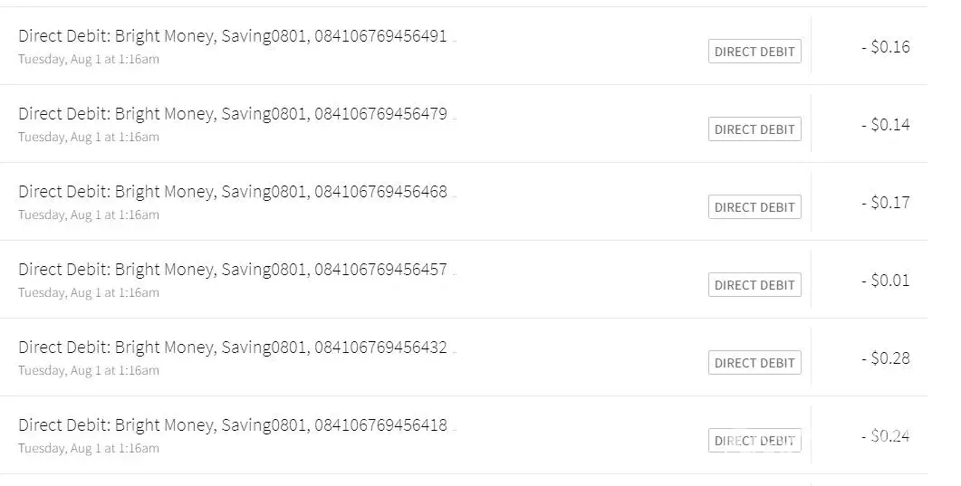 I began having withdrawals from my checking account from Bright Money on 7/19. The withdrawals were in batches of six debits all totaling $1.00. In total, I have had 46 debits in my checking account from Bright that I did not authorize. There were two 9.99 debits and a one-time 2.76 debit. The withdrawals seemed to come in the middle of the night as well. I attempted to call Bright 5 times in the course of a week at all hours of the day to see if someone would answer, and I only would get a recording advising me all reps were busy and to email customer support.