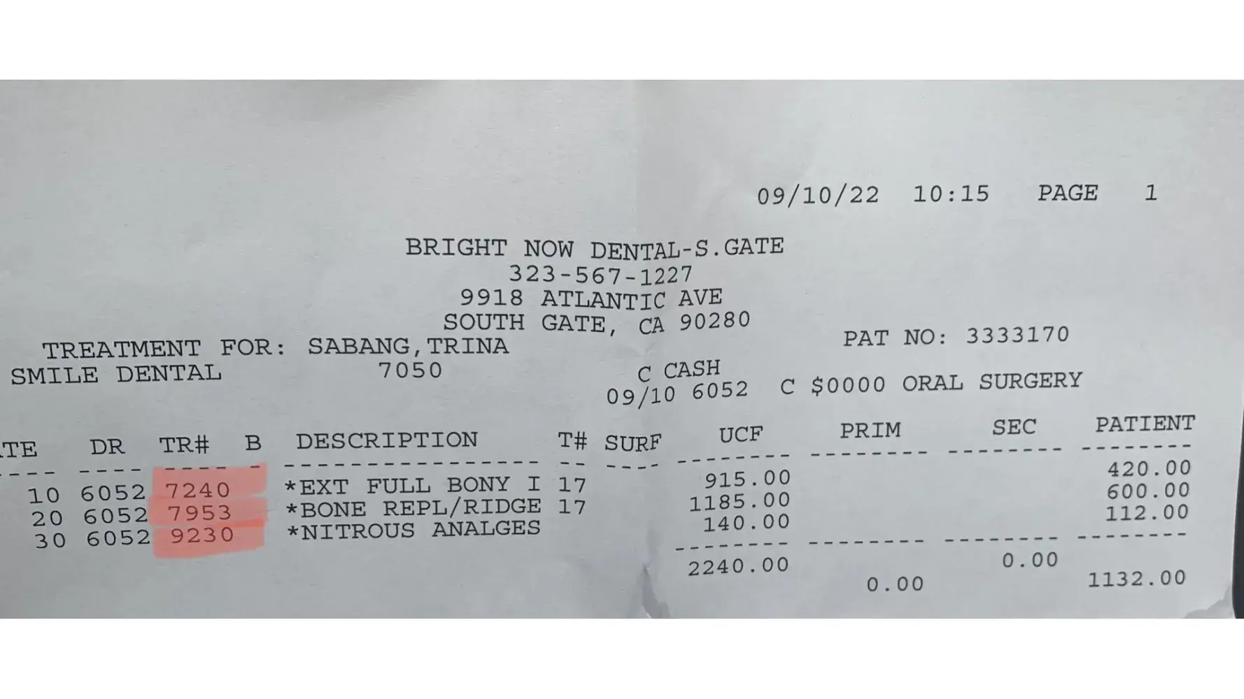I rushed my little sister in for an infected wisdom tooth extraction. The exam and x ray appointment went very well on bright now pico rivera, and was scheduled an appointment for oral surgery at bright now south gate, on 9918 atlantic ave south gate, ca 90280 on 9/10/22 at 7am in the morning. 1st issue i had was we were there on time at 7am but we were called at 9:40AM. Also i was waiting for someone to explain to me how the procedure will be done and everything but nobody did and just straight up gave us the description on what they will do and the price. I was charged extra for stuff nobody explained to me and cost me 1100 when i only expected it to only be around 600 for one wisdom tooth extraction. They also advised us to not eat or drink 8 hours prior to surgery for no reason. We expected that she will be put in sleep for it to be painless. Since their office is running all late and they started m6y sister at 9:40am instead of 7am and other people with oral surgery at 8-10am starts to check in, i feel like they rushed the procedure and skipped vital steps, because first my sister came outside crying in severe pain, with intense bleeding and dizzy and lightheaded. She told me every lthing about the procedure was painful and they did not put her in sedation. I ended up replacing her gauze multiple times cuz its bleeding a lot. When she comes out i asked the assistant with her on post surgery care and was in a rush and just told me that she can eat everything no limitations, and she should be ok.