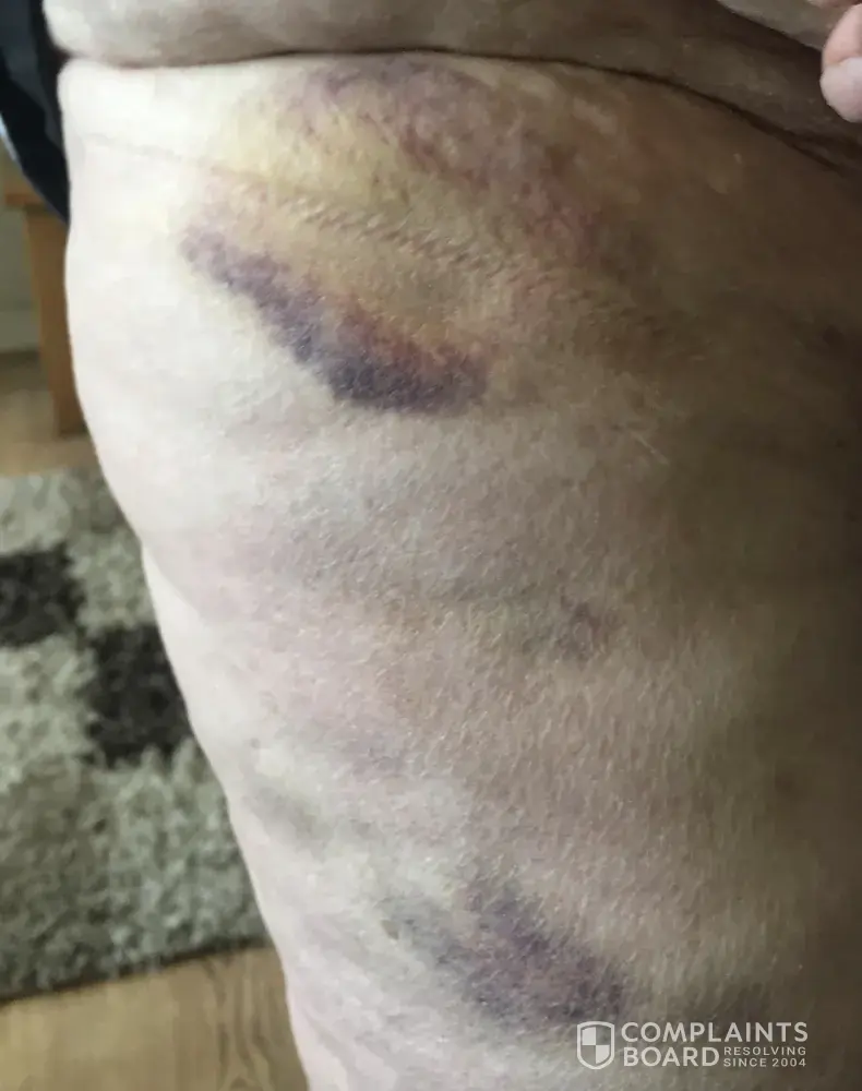 Hi I am writing this email because I feel very angry and upset. I paid for my mum, who is disabled to come to the hippodrome on Sunday 23rd June, to watch Tina Turner, what loves got to do with it, she came with a friend. I know it was a bit last minute when I bought the tickets, but I explained that my mum was disabled and was assured on the phone that although there would be some steps, the seats would be sufficient for my mums needs, however on the night they were led up a very steep staircase, which they managed to do slowly, so this wasn't to bad, but with no assistance from anyone. But the seats that they were given were terrible, my poor mum spent the whole show wedged into the seat sideways, as she had to stretch her legs out into the aisle to ease some of the pain she was in, she had to watch the show from the side with her back to her friend, at one point she was stuck in the chair and her friend had to help pull her out, causing more pain and more to the point damaging her self esteem as she was mortified that she was stuck, and at one point thought that she would have to phone for the fire brigade. My mum is an extremely proud person who would not ask for help or complain. I am very surprised that none of the staff noticed how awkward my mum looked. She said the show was amazing if only she could of been comfortable. The next day she was is so much pain she was in tears, and worse still 5 days later she showed me that she had bruises from when she was jammed into the seat. I was horrified as this was a treat from me and I feel so Upset and angry that she had gone through this. I think it is disgusting that there are no bigger seats for those that need it, I know that it is an old building but people come in different shapes and sizes for different reasons. My mum felt humiliated and embarrassed. I would really like to take this further as I would not want anyone else to go through this. For your observation I have enclosed the photos of the bruising that was caused, I'm sorry if their a bit graphic, but I'd like you to see why I am so upset.