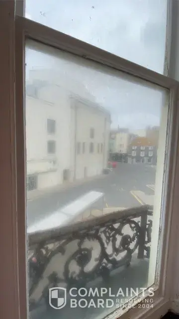 I booked into this hotel after waiting 2hours in a que to find the room I asked for with sea view and varander outside was disgusting and dangerous to walk out on if I or my grandchild fell god only knows what could have happened so I went and told receptionist who told me to go down and see manager in the morning so I did that and kept window closed so glass didn't fall out and we never seen a sea view also shower was mouldy and black varrander was full of poop and cigarette ends all over varander as well I've added photos to show what it was like and their was no notice to say it's ok to use I am seeking some compensation for a holiday for my grandchild before seniors so he could have a nice time which he did not have fun in your hotel we also had problems with lifts as I am disabled and had the children of refugees running and screaming playing in the lifts can you look into this please it's the grand hotel 6th September 2021 thankyou