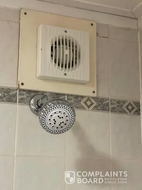 Shower came on I stepped into the bath. The water started to fill in the bath and not drain away. Upon inspection there was someone else's hair clogging up the plug hole and loose hair was flotation around my feet. Absolutely DISGUSTING! So looking at the bathroom in detail I also noticed the bath was leaking and there was mould down the side of the bath were the water was leaking out. There were cracked tiles and missing grout and I'm not sure having the extractor fan that close to the shower head is electrically safe?