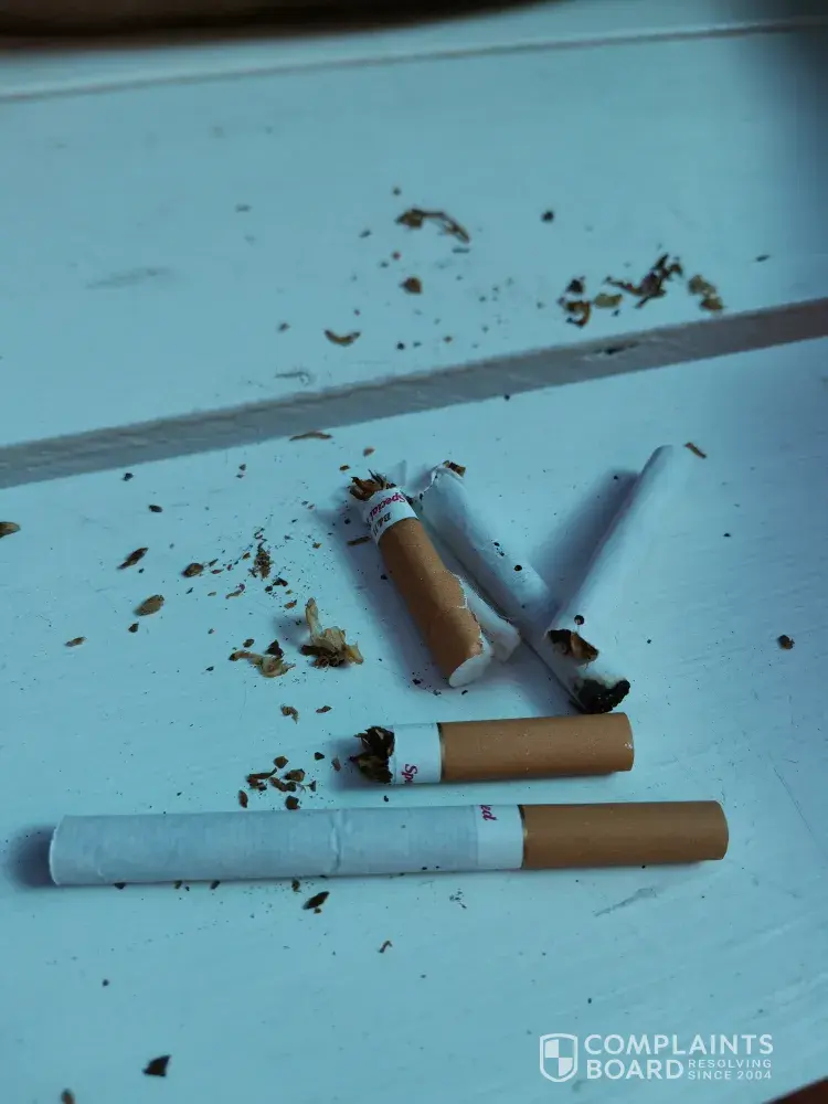 Iwould like to complain about the above product im a smoker of 50 years this has never happened before, I purchased in nicosia cyprus last wednesday pall mall violet slims after I opened them I noticed small holes in the cigarettes the package was undisturbed on the exterior, I threw some of them away when I got to the last few I noticed debris in the bottom of the pack I emptied it out and there was small worms and a small brown bug I have photo and video evidence of the bug actually moving, I called the [protected] number and spoke to a lady explaining what had happened she was horrified and assured me that someone from the office a mr fotis would call to collect the pack and the by now dead bug to be sent for analysis, that was wednesday today is saturday great customer service, my daughter is encouraging me to go to the consumers complaints in nicosia and flood the social media with the video and photos, but im not that vindictive having said that I am getting very annoyed that this complaint is not being taken very serious.