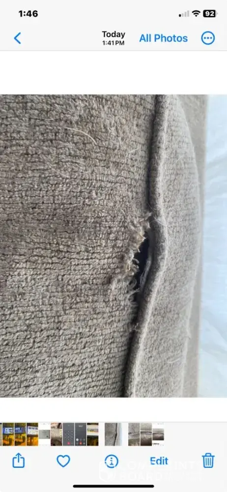 Couch is less than a year old. Fabric is very loose and couch is sunken in. The fabric looks so bad and has small fabric balls on it. The couch has always had a weird odor I have never been able to get out even though I’ve cleaned it multiple times.