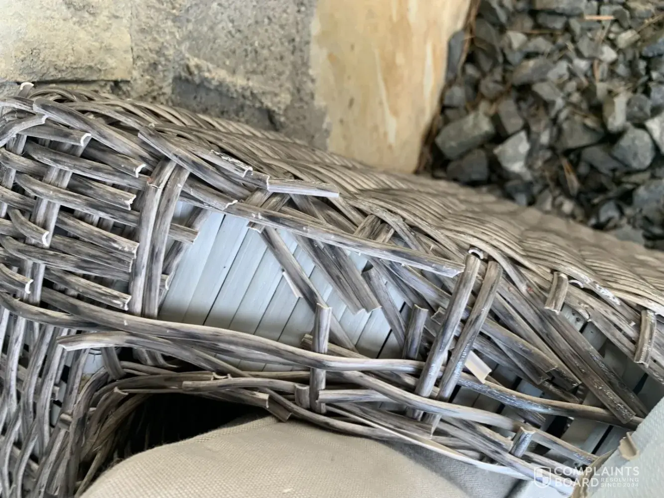 And the wicker on the arms is completely disintegrating and breaking into little pieces.