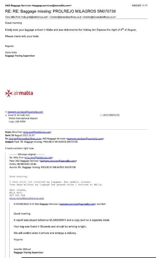 Hace meses hice la siguiente reclamación a través del servicio de atención al cliente de BRUSSELS AIRLINES: