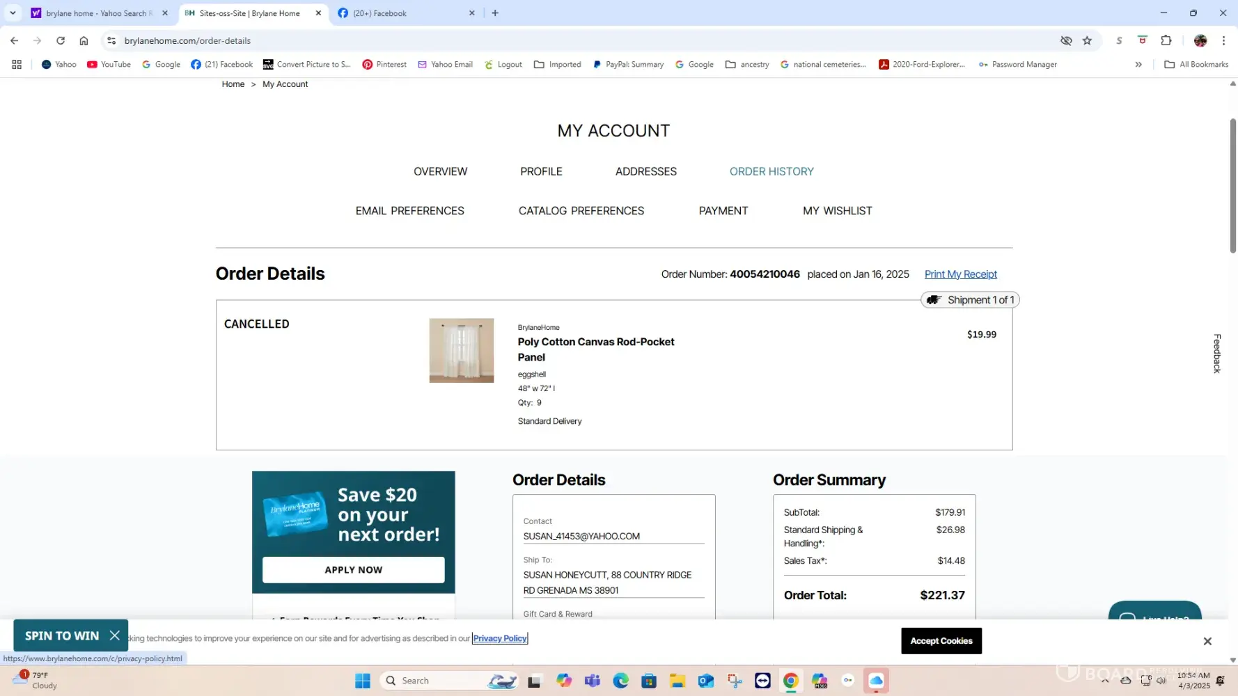 Brylane Home Cancelled order [protected]