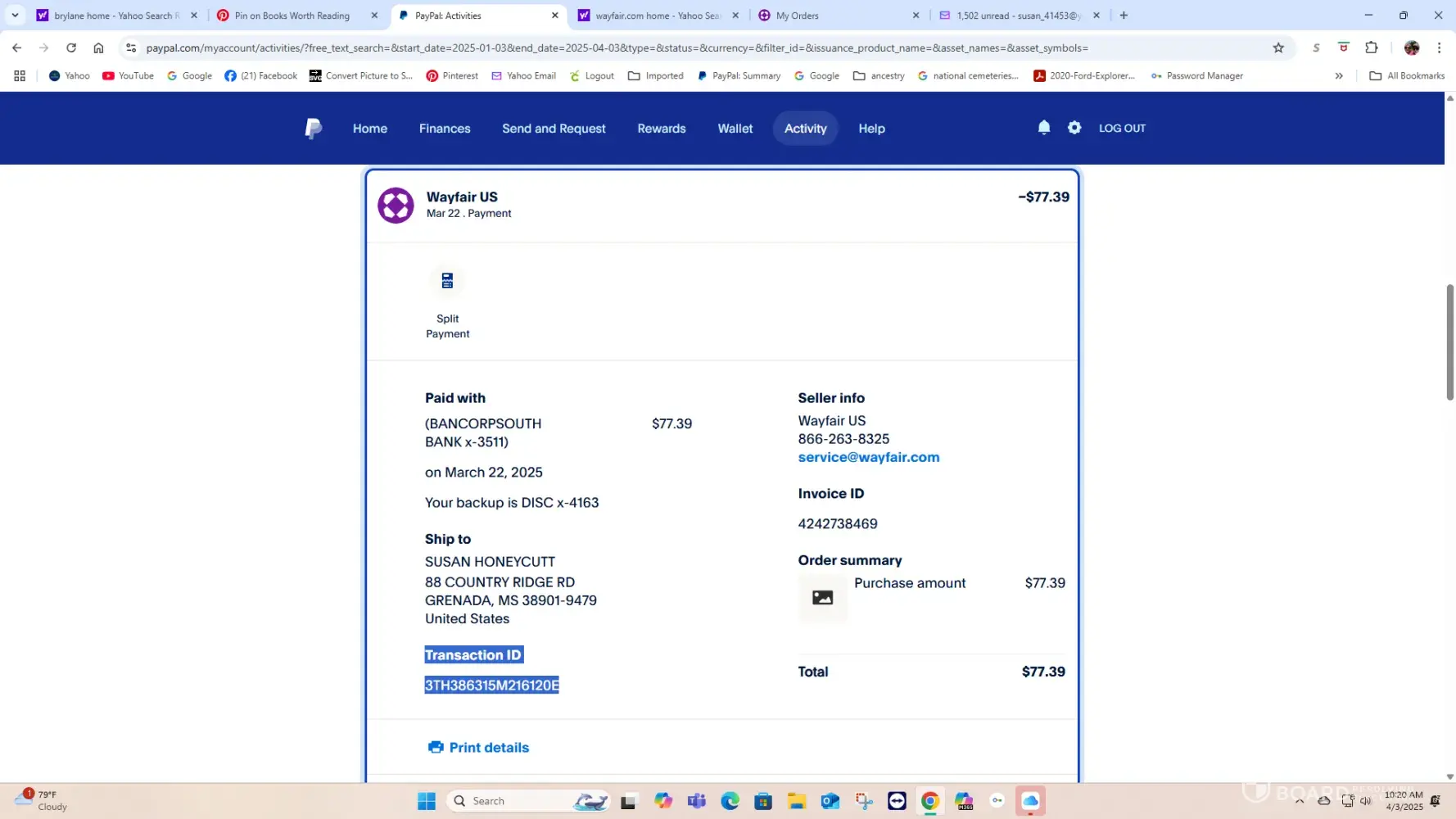 dates charged March 31, 2025 and April 1, 2025