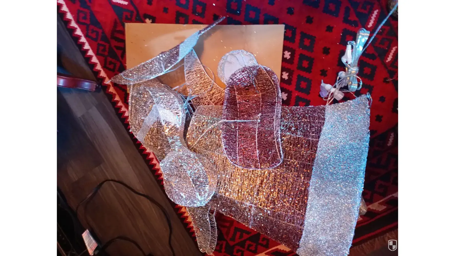 The angel is very damaged it is really bad the glitter is coming off it is torn the color is coming off it look like someone has had it for years I have contacted the company I was told to get in touch with the claims department I've had him to give me two websites and I still cannot find it I have emailed them I just received it yesterday but I am definitely trying to take pictures so they can see it thanks Eloise Lewis