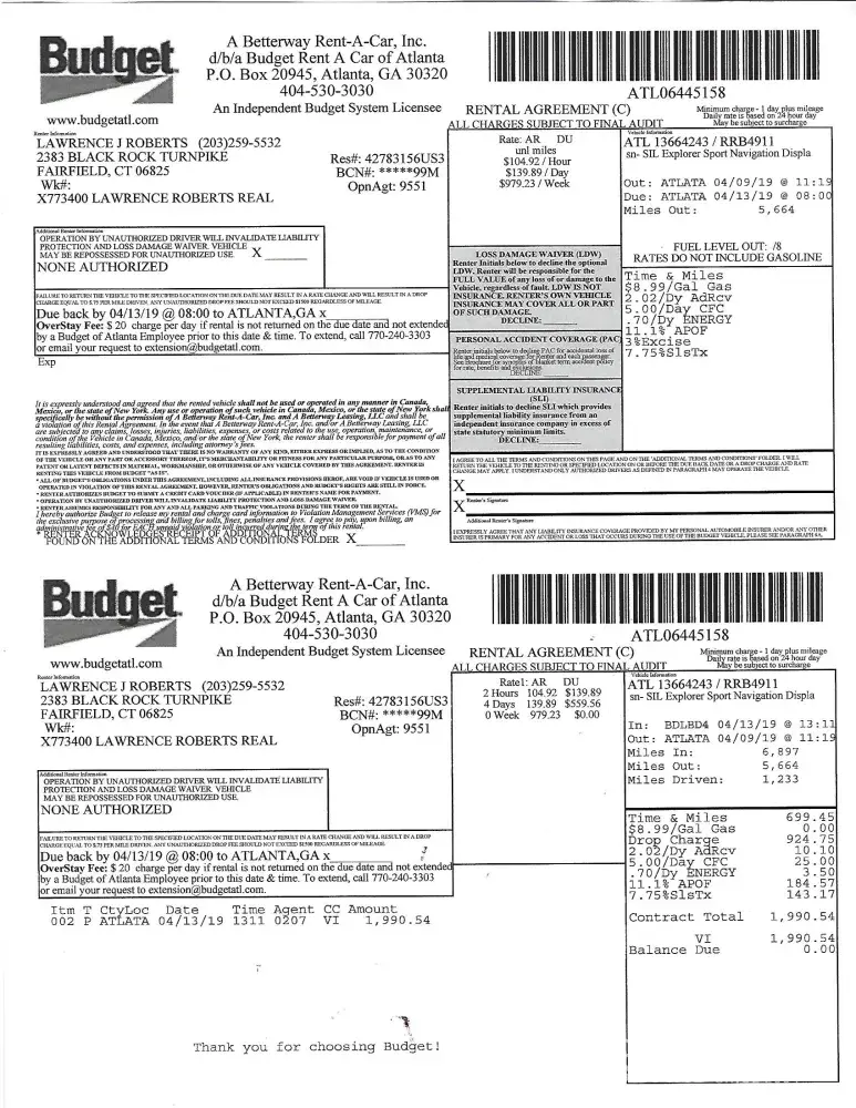 I had to request the final bill and contract from the airport desk, 404 530 3000.