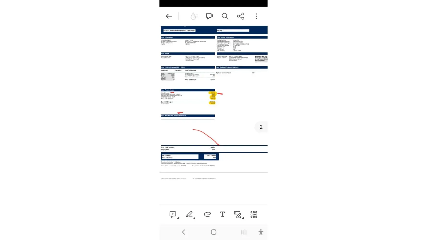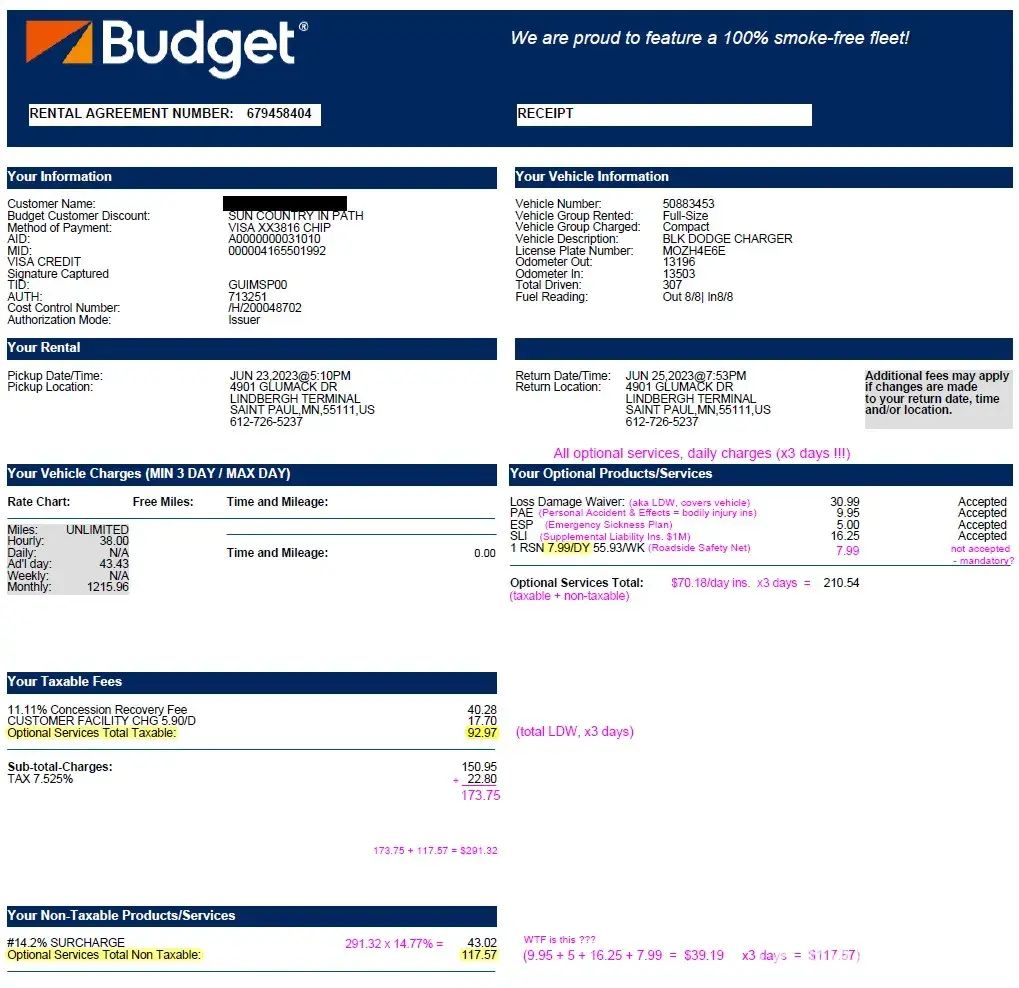 This billing statement was for the add-on charges above & beyond the basic rental price, which was promoted and paid along with airfare on the airline website.