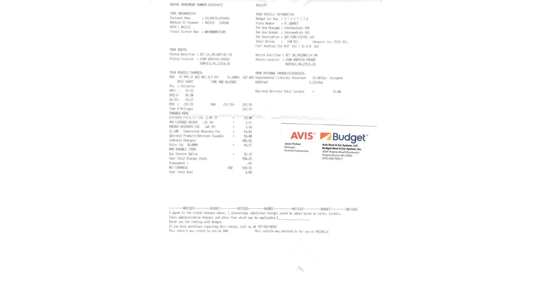 Michelle printed me out the receipt and said there wasn't anything more she could do, except advise me to file a complaint and ask for some money back.